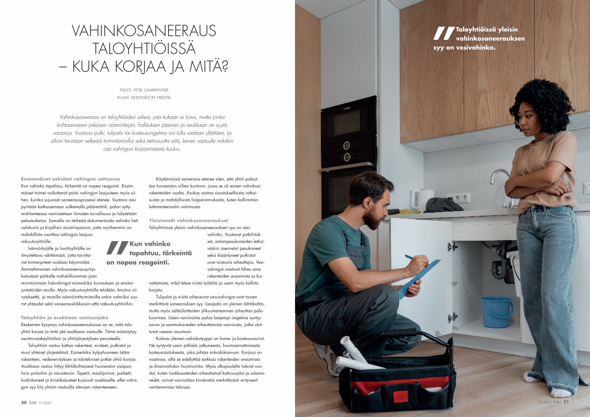 Taloyhtiöissä yleisin vahinkosaneerauksen syy on vesivahinko.