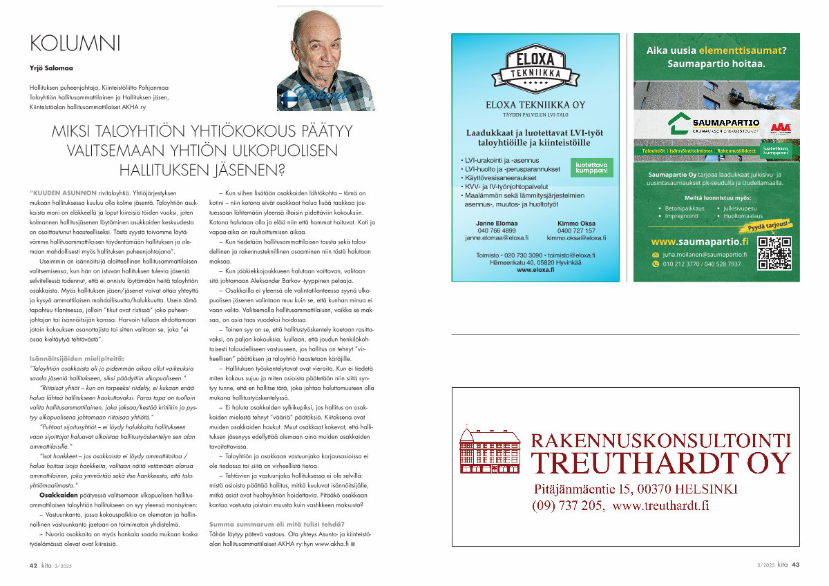 Summa summarum eli mitä tulisi tehdä? Tähän löytyy pätevä vastaus. Ota yhteys Asunto- ja kiinteistöalan hallitusammattilaiset AKHA ry: hyn www. akha. fi n