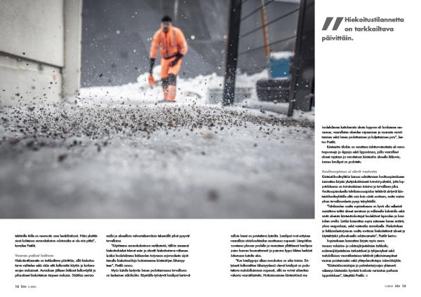 ” Talvikauden osalta sopimuksessa on hyvä olla selkeästi mainittuna mitkä alueet aurataan ja millaisella kalustolla sekä mistä alueista kiinteistönhoitajat huolehtivat lapioiden ja lumikolien avulla . Lisäksi kannattaa sopia sataneen lumen määrä , johon reagoidaan , sekä vasteaika auraukselle . Hiekoituksen ja liukkaudentorjunnan osalta sovitaan hiekoitettavat alueet ja käytetäänkö piha-alueella sulatusaineita ”, Pietilä kertoo .