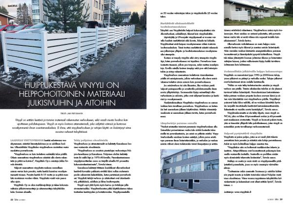 Vinyyliraaka-ainetta ei ole tehty öljystä , vaan vinyyli on PVC : tä , joka on lähes 60-prosenttisesti suolaa ja 40-prosenttisesti maakaasun sivutuotetta . Vinyyli on huonosti palava tuote , joka ei itsessään ylläpidä tulta palotilanteessa , joten vinyyli on esimerkiksi puuta turvallisempi verhousmateriaali .