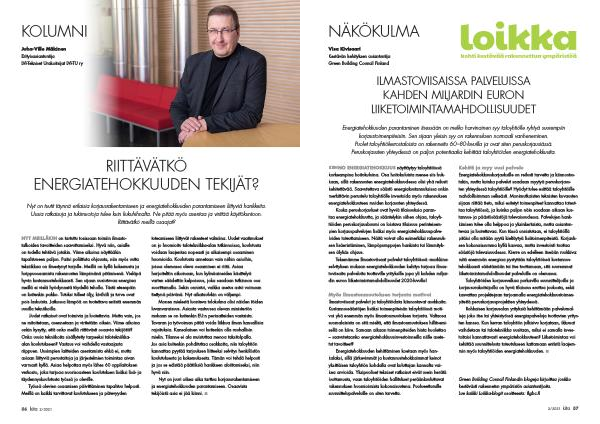 Green Building Council Finlandin blogeja kirjoittaa joukko kestävästi rakennetun ympäristön asiantuntijoita . Lue kaikki Loikka-blogit osoitteesta : figbc . fi