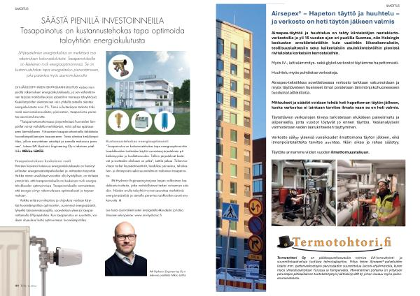 Termotohtori Oy on pääkaupunkiseudulla toimiva LVI-konsultointi- ja suunnittelupalveluja tuottava teknologiayritys . Yritys tekee Airsepex ® -palveluiden lisäksi mm . patteriverkostojen perussäädön suunnittelua Jaconi-ohjelmistolla , kuten myös yhteistyöyritykset Turussa ja Tampereella . Menetelmien pohjana on yrityksen perustajan pitkäaikainen tuotekehitystyö ( väitöskirja 2010 ), johon kuuluu myös paineeromenetelmä .