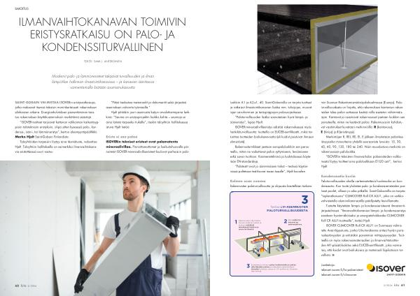 " ISOVERin teknisten ilmanvaihdon paloeristeiden valikoimasta löytyy tuotteet aina paloluokkaan EI120 asti ", kertoo Hjelt .