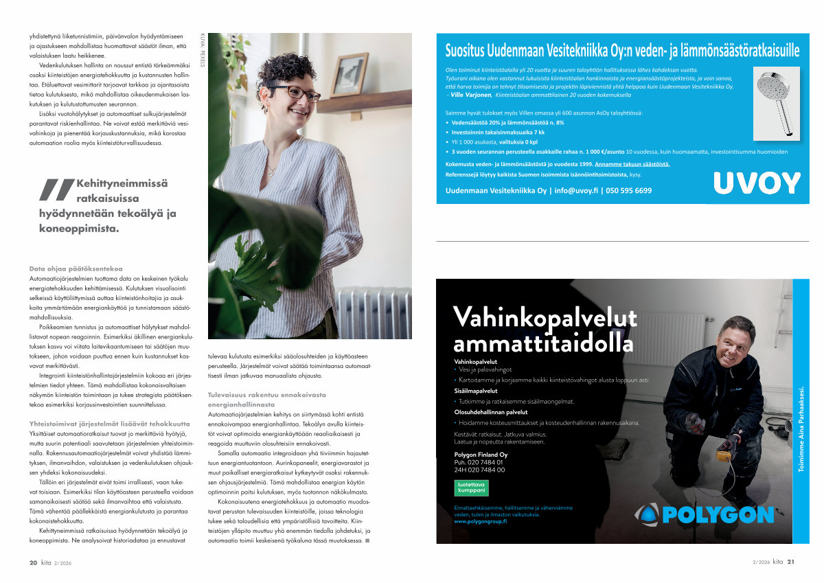 Olen toiminut kiinteistöalalla yli 20 vuotta ja suuren taloyhtiön hallituksessa lähes kahdeksan vuotta. Työurani aikana olen vastannut lukuisista kiinteistöalan hankinnoista ja energiansäästöprojekteista, ja voin sanoa, että harva toimija on tehnyt tilaamisesta ja projektin läpiviennistä yhtä helppoa kuin Uudenmaan Vesitekniikka Oy.- Ville Varjonen, Kiinteistöalan ammattilainen 20 vuoden kokemuksella