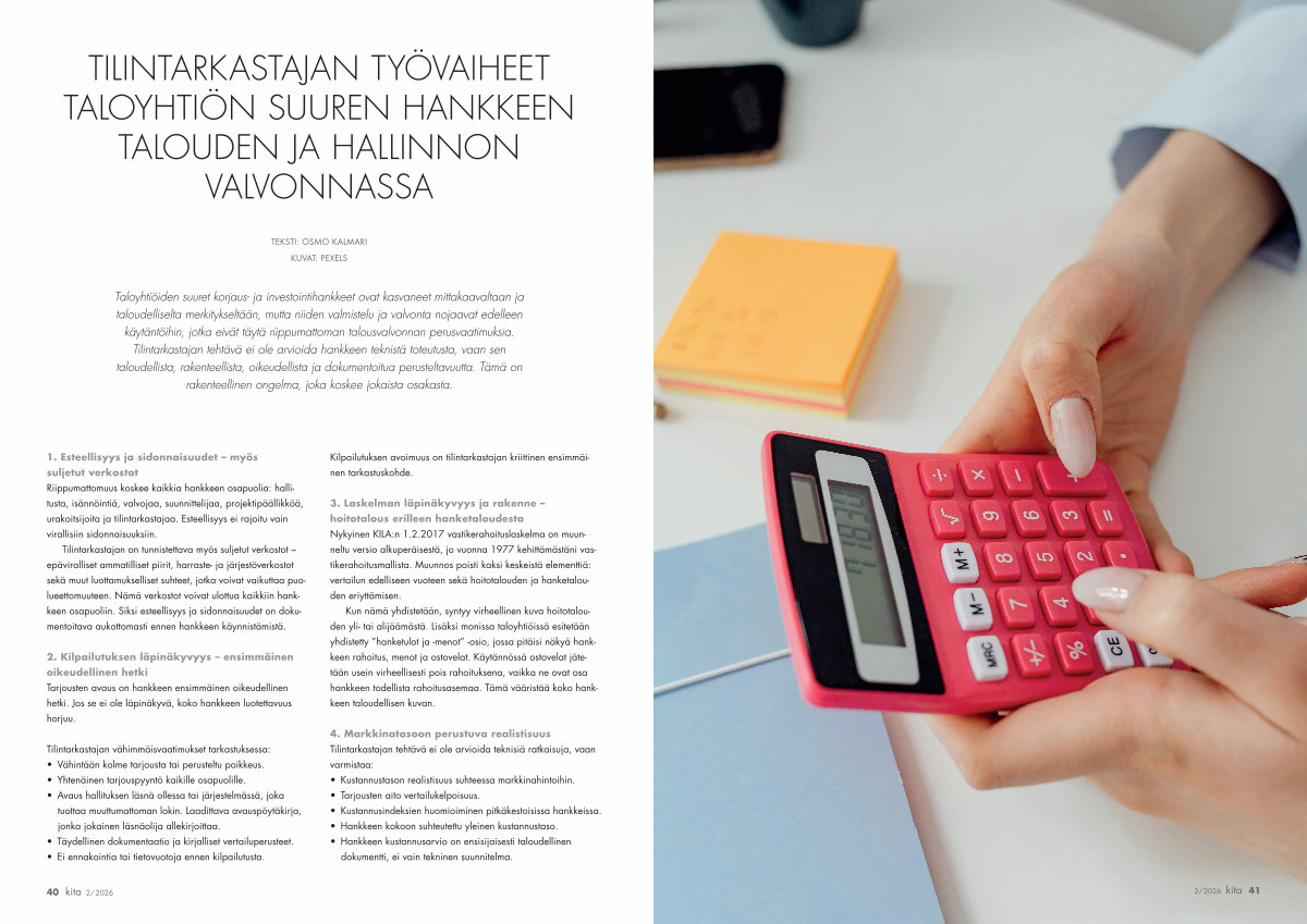 Taloyhtiöiden suuret korjaus- ja investointihankkeet ovat kasvaneet mittakaavaltaan ja taloudelliselta merkitykseltään, mutta niiden valmistelu ja valvonta nojaavat edelleen käytäntöihin, jotka eivät täytä riippumattoman talousvalvonnan perusvaatimuksia. Tilintarkastajan tehtävä ei ole arvioida hankkeen teknistä toteutusta, vaan sen taloudellista, rakenteellista, oikeudellista ja dokumentoitua perusteltavuutta. Tämä on rakenteellinen ongelma, joka koskee jokaista osakasta.