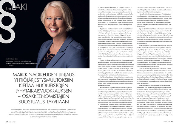 Patentti- ja rekisterihallitus oli evännyt yhtiöjärjestysmuutoksen sillä perusteella , että yhtiöjärjestysmuutos loukkasi osakkeenomistajan oikeutta luovuttaa osakehuoneisto kokonaan tai osaksi toisen käyttöön ja vaikka tällainen muutos sinänsä olisikin mahdollinen , se vaatii kaikkien osakkeenomistajien suostumuksen , joihin muutos vaikuttaa . Muutos koskisi kaikkia asuinhuoneistoja , jolloin kaikilta osakkailta olisi saatava suostumus . Asunto-osakeyhtiö valitti asiasta Markkinaoikeuteen .