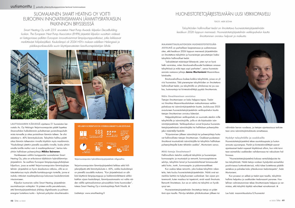 ” Kirjautumisen jälkeen isännöitsijä tai puheenjohtaja hoitavat hallinnollisten tietojen ilmoittamisen. Osakkaat puolestaan ilmoittavat muutostöistä isännöitsijälle tai taloyhtiön hallituksen puheenjohtajalle kuten tähänkin saakka”, Murtoniemi sanoo.