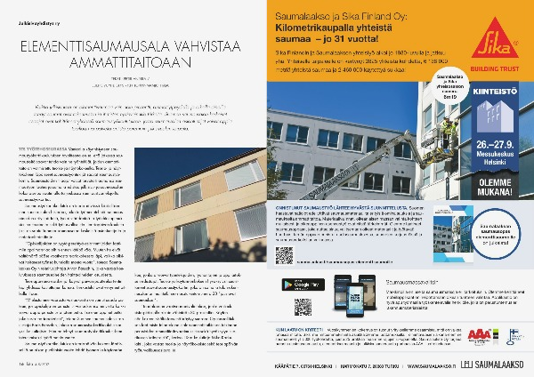 tehdyt saumat ovat rakennusten ja ihmisten hyvinvoinnille tärkeitä. Suomen saumausalan keskeiset