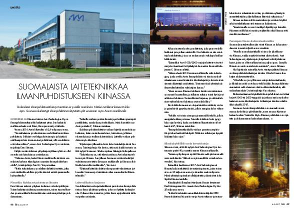 kosken kouluun Vantaalla. Myös Kiinassa puhdistimia on sijoi-