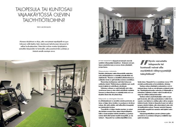 Hyvin varustettu talopesula tai kuntosali voivat olla merkittävä viihtyvyystekijä taloyhtiössä ”