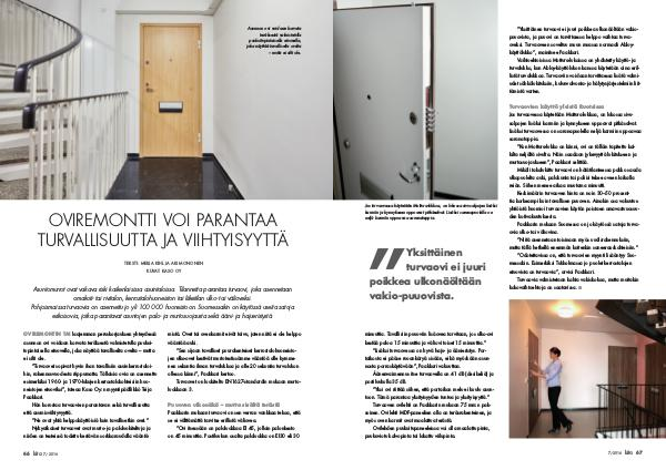 ”Yksittäinen turvaovi ei juuri poikkea ulkonäöltään vakiopuuovista, ja puuovi on tarvittaessa helppo vaihtaa turvaoveksi. Turvaoveen soveltuu muun muassa normaali Abloykäyttölukko”, mainitsee Paakkari.